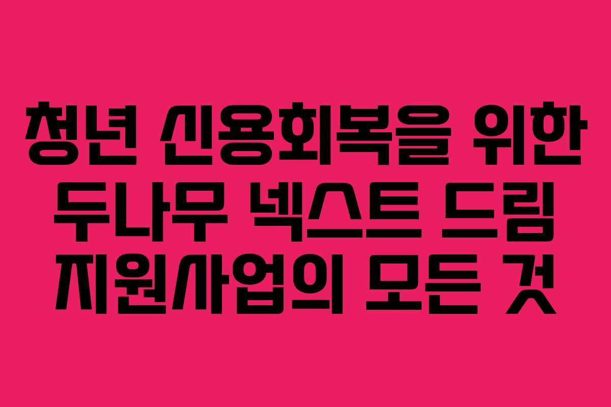 두나무 넥스트 드림 사업은 부채 문제로 어려움을 겪고 있는 청년들에게 실질적인 지원을 제공하는 프로그램입니다. 이 프로그램은 신용회복위원회에서 채무조정이 완료된 청년들을 대상으로 하며, 지원 내용과 신청 방법에 대한 정보를 제공합니다. 이를 통해 청년들이 자립할 수 있도록 돕고자 합니다.