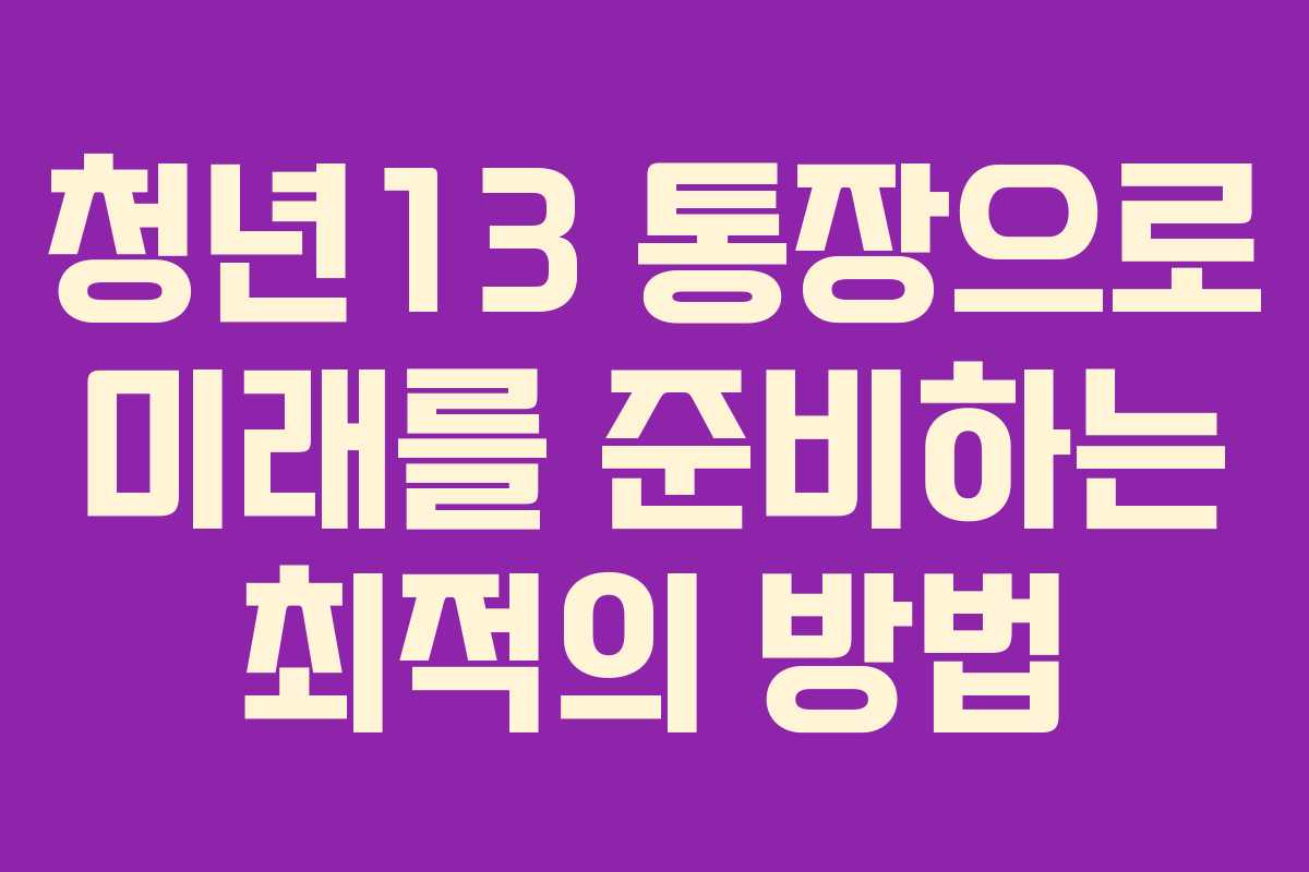 청년13 통장으로 미래를 준비하는 최적의 방법