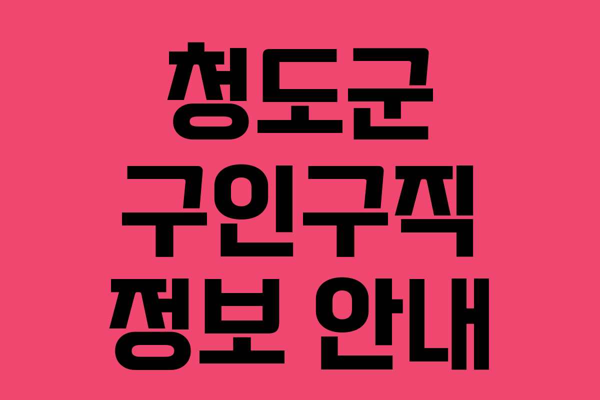 청도군청의 공식 홈페이지와 청도군 일자리지원센터를 통해 구인구직 정보를 확인할 수 있습니다.