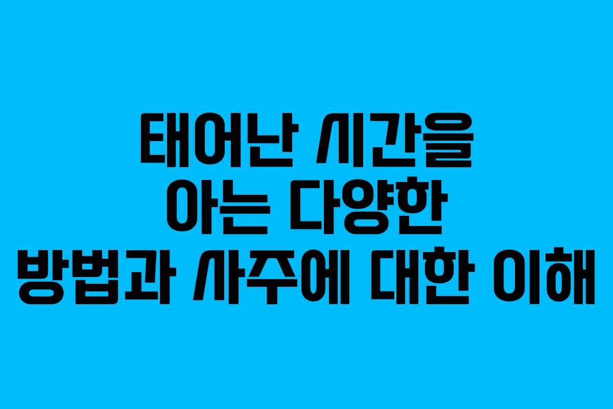 최근 몇 년 사이에 별자리와 사주에 대한 관심이 높아지고 있습니다. 특히 주변 사람들, 특히 자녀들이 자신의 태어난 시간이 궁금해하는 경우가 많습니다. 태어난 시간을 알면 사주를 더욱 정확하게 볼 수 있기 때문에 많은 사람들이 이를 중요시 여깁니다. 여기서는 태어난 시간을 확인할 수 있는 여러 가지 방법을 소개합니다.