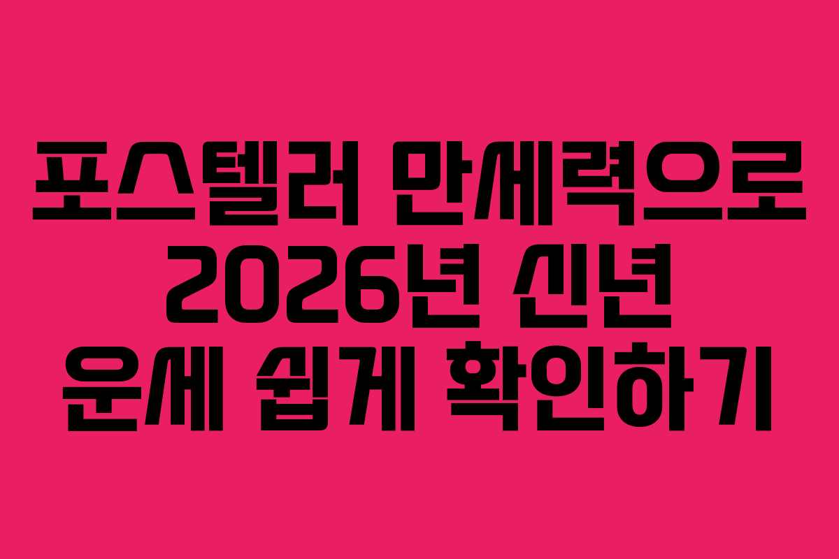 2026년이 다가오면서 새로운 한 해에 대한 기대감이 커지고 있습니다. 많은 이들이 올해의 운세를 미리 확인하고자 합니다. 특히, 포스텔러 만세력은 생년월일시만 입력하면 나의 타고난 운명과 2026년 신년 운세를 무료로 알 수 있는 최고의 도구로 자리 잡고 있습니다. 오늘은 포스텔러 만세력의 특징과 활용법에 대해 알아보겠습니다.