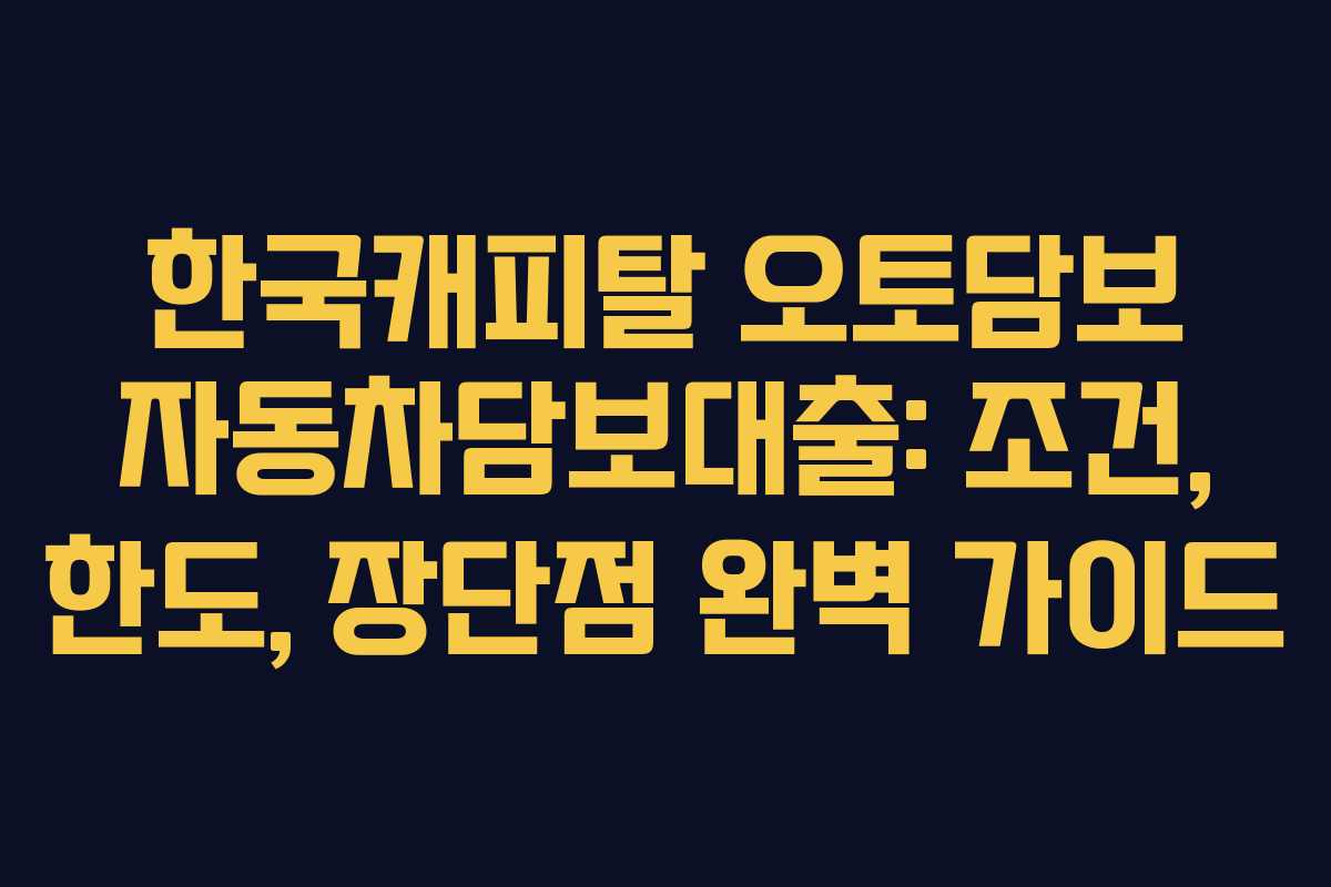 한국캐피탈의 오토담보 자동차담보대출은 차량을 담보로 하여 필요한 자금을 빠르게 확보할 수 있는 금융 서비스입니다. 많은 사람들이 급한 자금이 필요할 때 이 대출 상품을 통해 해결하고자 합니다. 이 글에서는 2026년 기준으로 한국캐피탈의 오토담보 대출의 조건, 한도, 장단점 등을 자세히 알아보겠습니다.