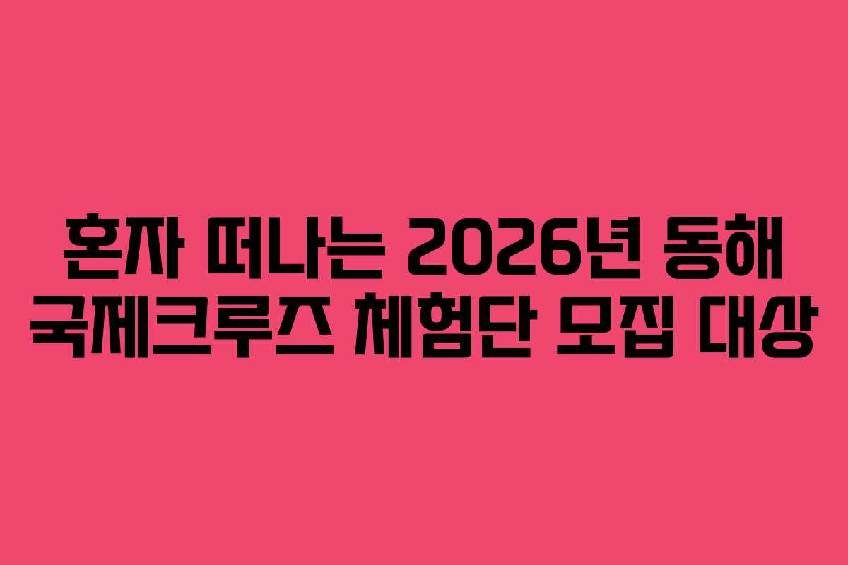 2026년, 저는 크루즈 여행의 매력에 푹 빠졌습니다. 우연히 알게 된 2026년 동해 국제크루즈 체험단 모집 소식은 마치 저를 위한 특별한 초대장 같았습니다. 이 프로그램은 단순한 여행 이상의 경험을 제공하며, 매력적인 동해의 바다를 탐험할 수 있는 기회였습니다. 오늘은 이 체험단에 대한 모든 정보를 공유하며, 저의 경험을 통해 여러분이 느낄 수 있도록 하겠습니다.