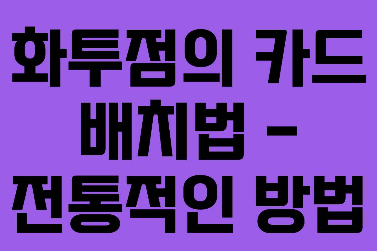 화투점의 카드 배치법은 화투점을 시작하는 데 있어 핵심 요소로 작용합니다. 카드를 어떻게 배치하느냐에 따라 그 의미가 달라지기 때문에 정확한 배치법을 아는 것이 매우 중요합니다. 이 글에서는 전통적인 카드 배치법을 다루고 그 의미를 살펴보겠습니다.