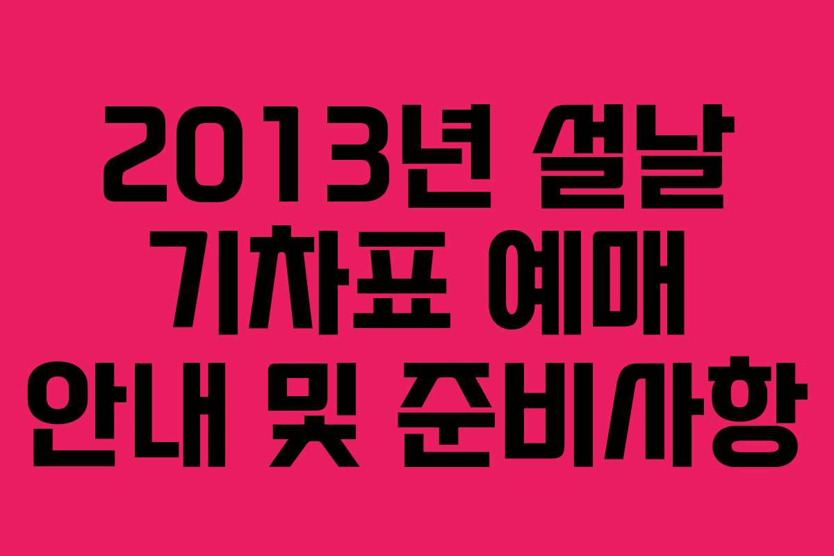 2013년 설날 기차표는 코레일 홈페이지에서 예매할 수 있으며, 주요 역과 대리점에서도 가능하다. 예매는 1인당 최대 12매까지 가능하고, 예약 후 1주일 내에 결제를 완료해야 한다. 결제하지 않은 예약은 자동으로 취소된다. 인터넷 예매는 코레일 멤버십 가입자만 가능하므로 미리 회원 가입을 확인하는 것이 중요하다.