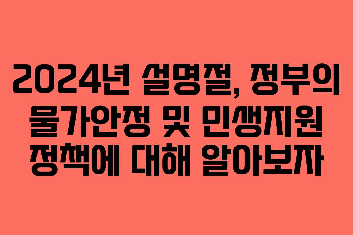 2024년 설명절이 다가오면서 정부는 물가안정과 민생지원을 위한 다양한 대책을 마련하고 있다. 이번 연휴 기간 동안 소비자들이 누릴 수 있는 혜택과 지원금에 대해 자세히 알아보도록 하겠다.