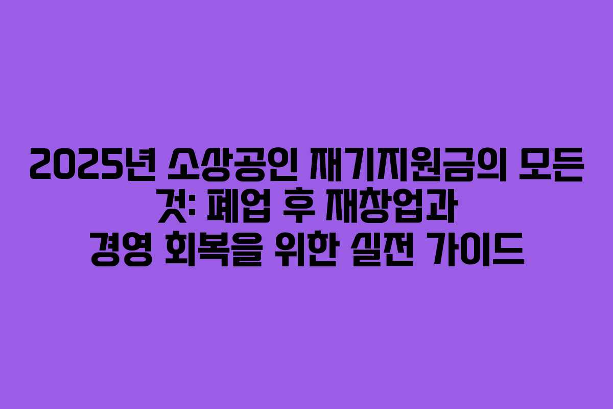 2025년 소상공인 재기지원금은 폐업하거나 매출이 감소한 소상공인을 위한 정부의 지원 프로그램입니다. 이 프로그램은 단순한 자금 지원을 넘어 심리적 회복과 경영 재기, 재도전이라는 세 가지 단계로 구성되어 있습니다. 본 가이드는 지원금의 내용과 절차를 상세히 안내합니다.