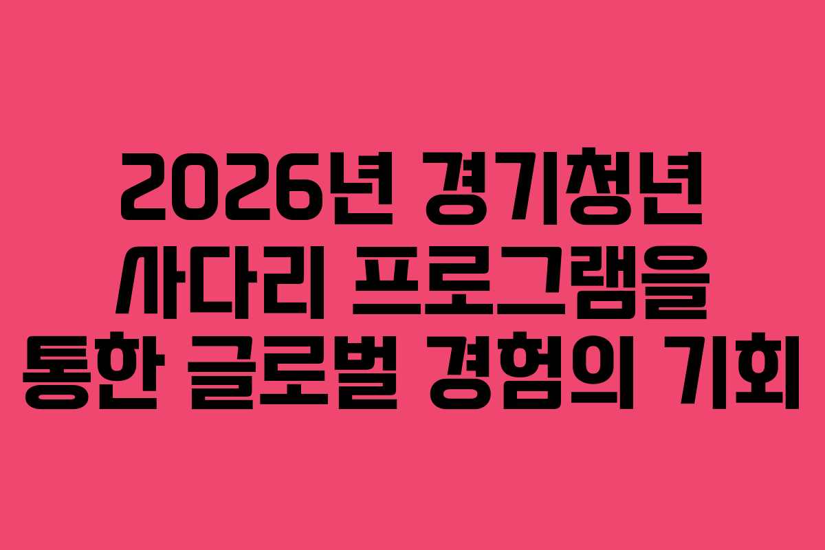 2026년 경기청년 사다리 프로그램을 통한 글로벌 경험의 기회
