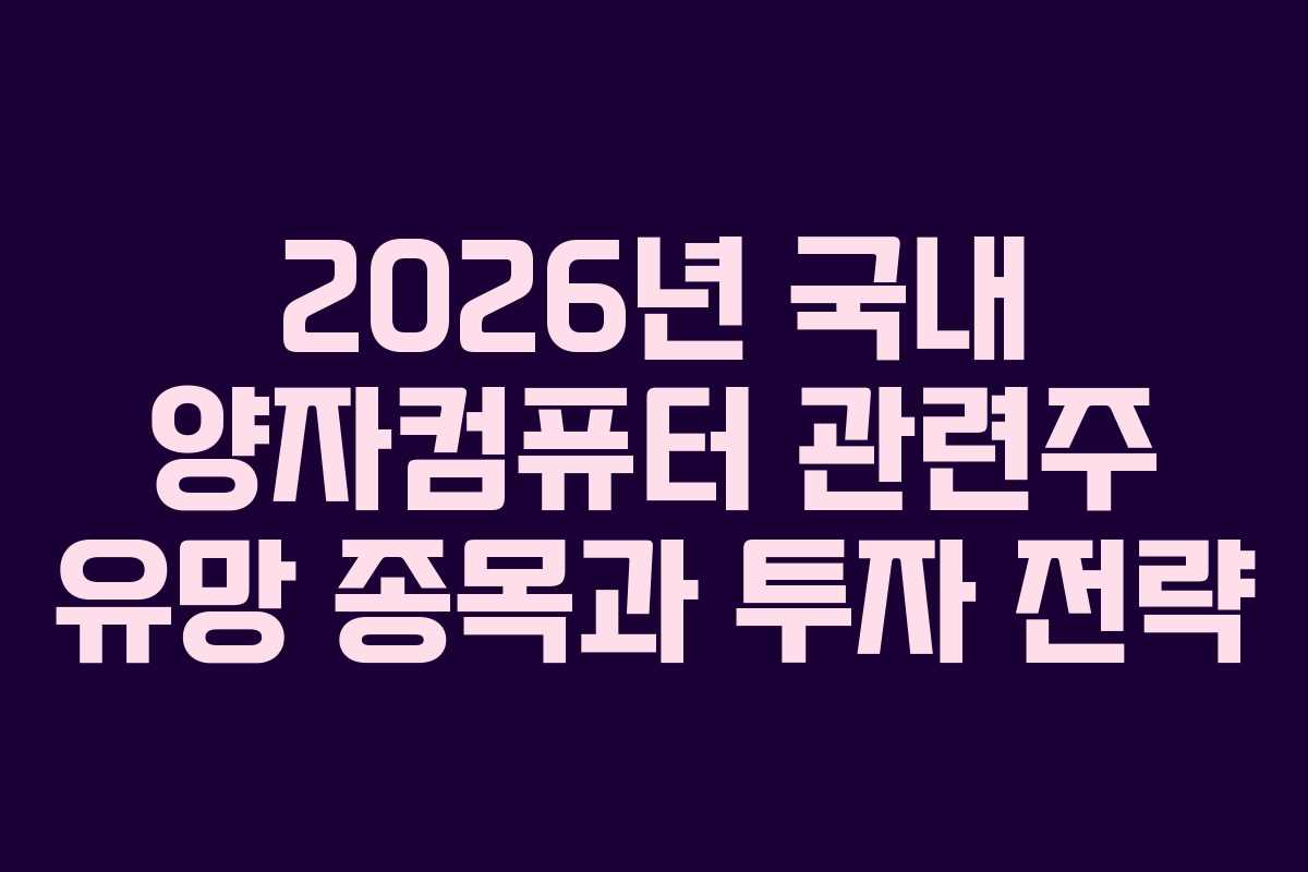2026년 국내 양자컴퓨터 관련주 유망 종목과 투자 전략