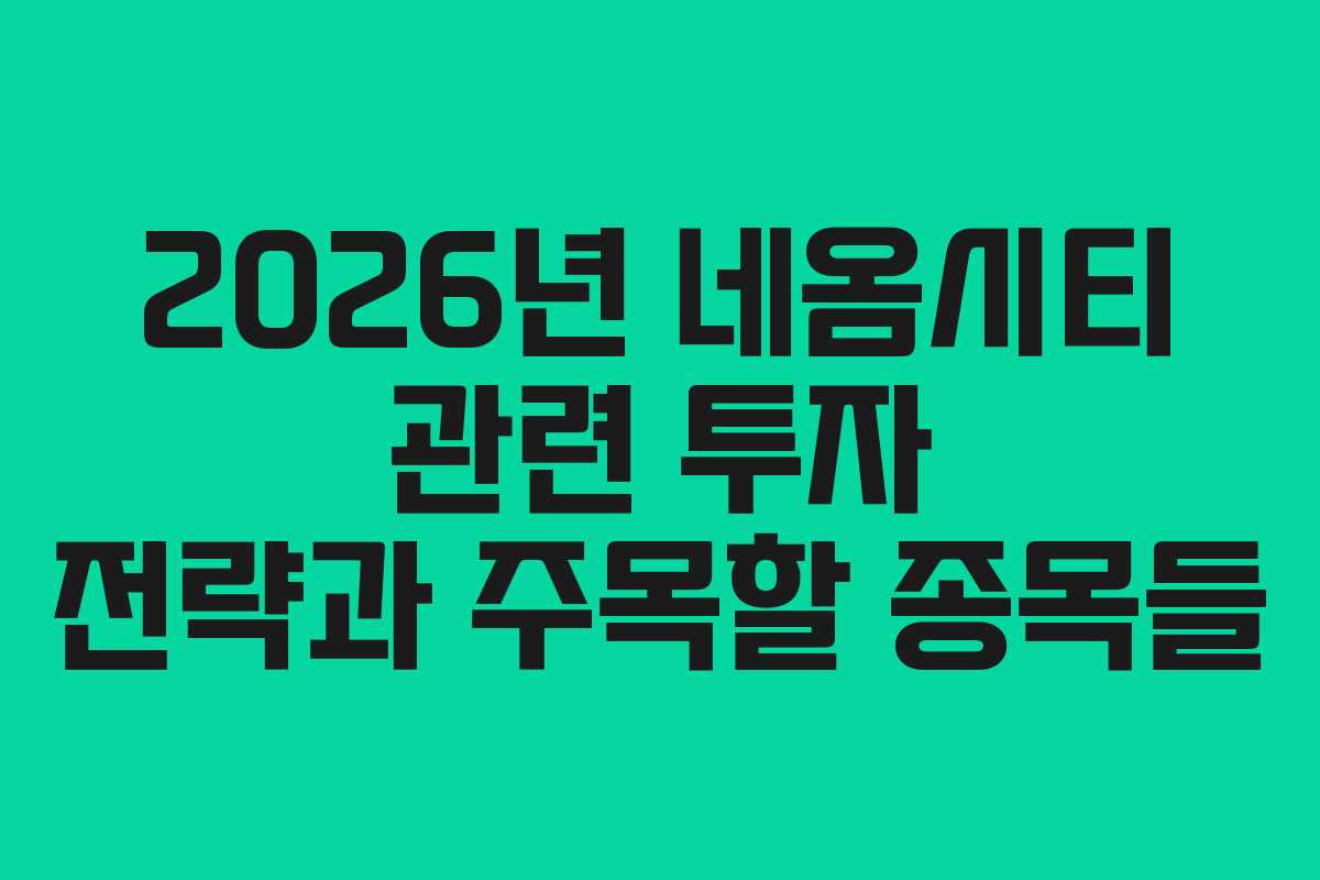 2026년 네옴시티 관련 투자 전략과 주목할 종목들