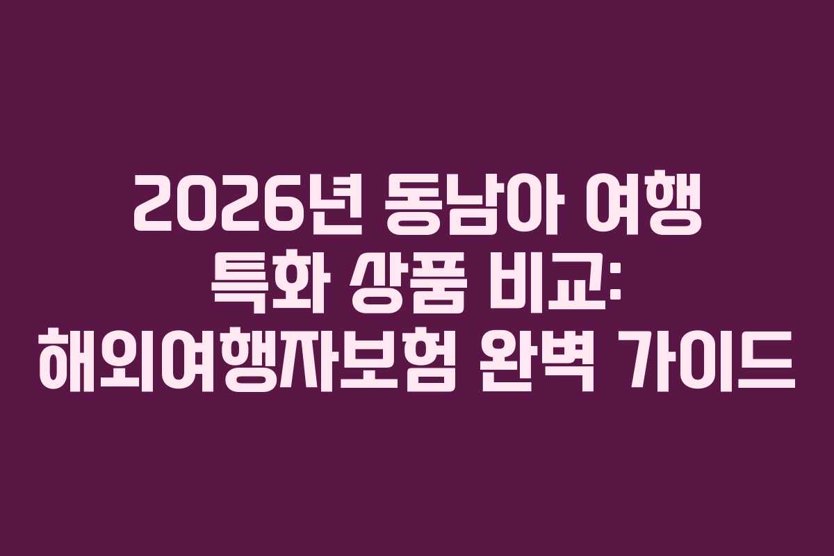 2026년 동남아 여행을 위한 해외여행자보험 추천 리스트