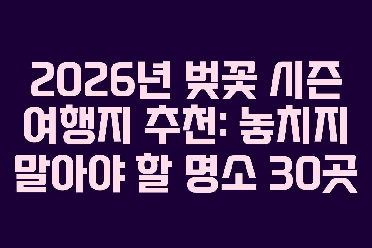2026년의 봄이 다가오고 있습니다. 3월 중순부터 시작되는 벚꽃 시즌에 맞춰, 전국의 아름다운 명소들을 소개합니다. 이 글에서는 2026년 꼭 방문해야 할 벚꽃 여행지를 정리하였으니, 알찬 여행 계획에 도움이 되길 바랍니다.