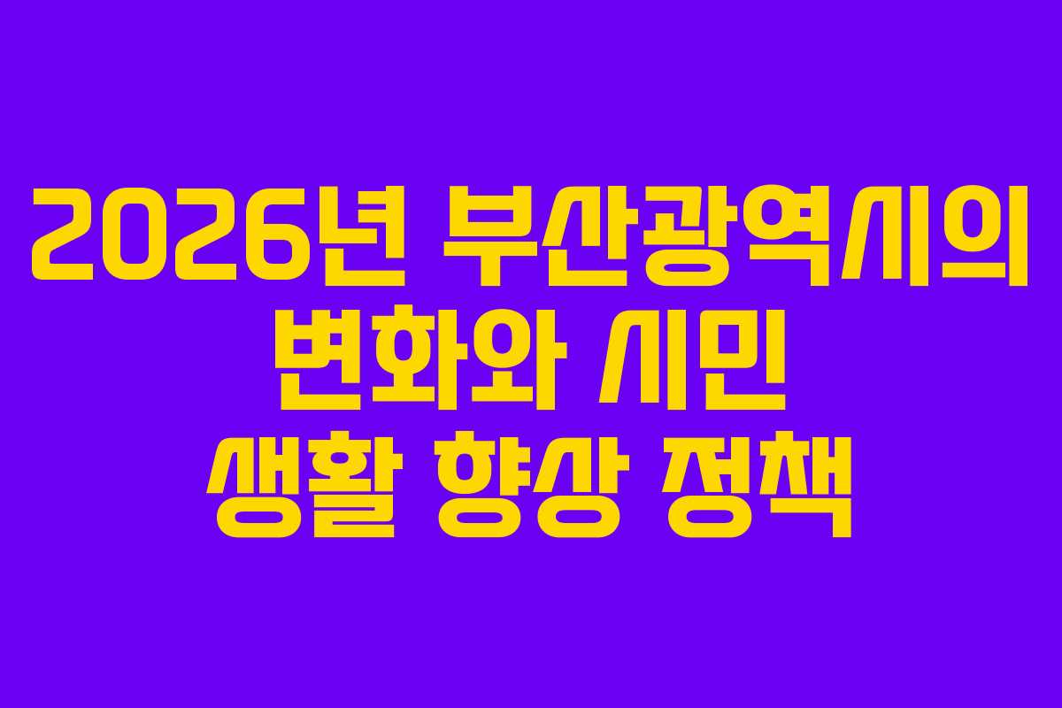 2026년 부산광역시의 변화와 시민 생활 향상 정책