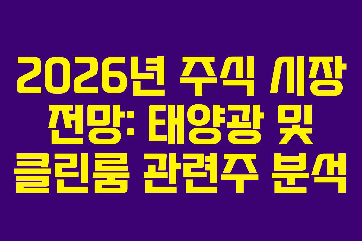 2026년을 맞이하여, 주식 시장의 흐름과 특정 산업의 잠재력에 대한 관심이 그 어느 때보다 높아지고 있습니다. 특히 태양광 발전과 클린룸 산업은 지속적인 발전 가능성으로 주목받고 있습니다. 이들 산업에 대한 분석을 통해 투자자들이 고려해야 할 포인트를 정리해 보겠습니다.
