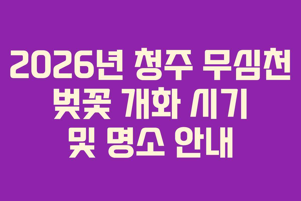 청주 무심천의 벚꽃은 2026년 3월 31일에 개화하여 4월 7일에 만개할 것으로 예상된다. 이 시기가 가장 좋으며, 많은 사람들이 찾는 시점이기도 하다.