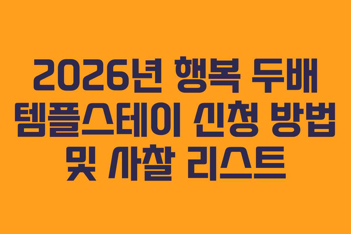 2026년 행복 두배 템플스테이 신청 일정 및 참여 방법
