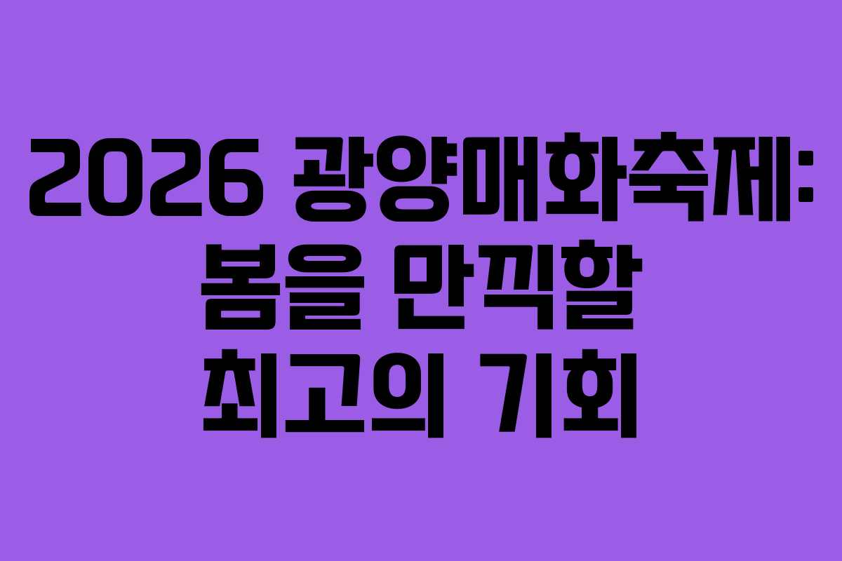 2026년 광양매화축제는 봄의 시작을 알리는 특별한 행사입니다. 화사한 매화꽃과 함께 잊지 못할 추억을 만들어 보세요.