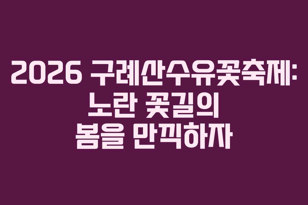 2026년 구례산수유꽃축제는 방문객들에게 아름다운 추억을 선사할 기회를 제공합니다. 축제 일정 및 프로그램은 기상 상황이나 주최 측 사정에 따라 변경될 수 있으니, 방문 전 공식 홈페이지를 통해 최신 정보를 확인하는 것이 좋다.