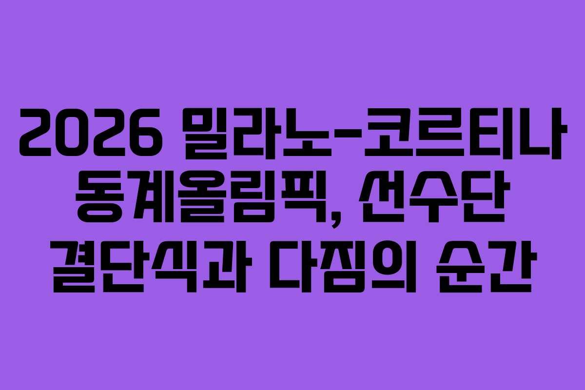 2026 밀라노-코르티나 동계올림픽은 전 세계 90개국에서 5,000여 명의 선수가 참가하는 대규모 행사로, 한국 선수단은 6개 종목에 66명의 선수가 출전할 예정이다. 평창 올림픽의 영광을 이어받아 이번 올림픽에서도 멋진 성과를 거두기를 기대하며, 많은 이들이 선수들에게 응원의 메시지를 보내고 있다. 앞으로도 지속적인 관심과 응원이 필요하다.
