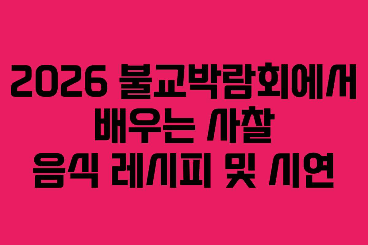 2026 불교박람회에서의 사찰 음식 경험은 제 삶에 큰 영향을 미쳤습니다. 그 동안의 바쁜 일상 속에서 잊고 있었던 ‘음식의 의미’를 다시금 되새기는 계기가 되었습니다. 사찰 음식은 단순히 요리를 배우는 것이 아니라, 삶의 지혜와 마음의 평화를 배우는 과정이라는 것을 깨달았습니다. 이러한 경험을 더 많은 사람들이 함께 나누고 실천할 수 있기를 바랍니다.