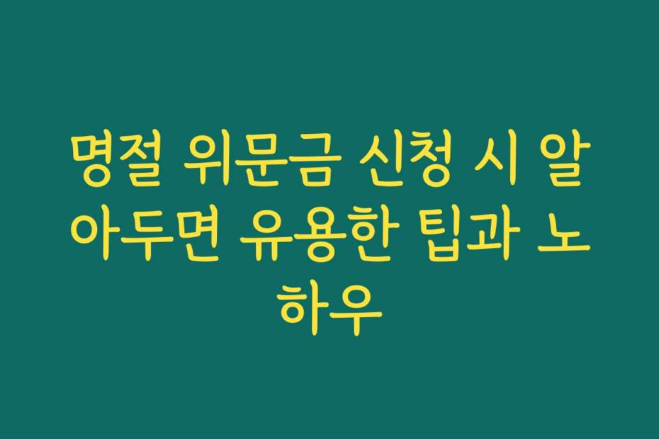 명절 위문금 신청 시 알아두면 유용한 팁과 노하우 정보, 도대체 어디서부터 확인해야 할지 막막하시죠. 명절 위문금은 다양한 지원 혜택 중에서도 많은 이들이 놓치는 항목 중 하나예요.