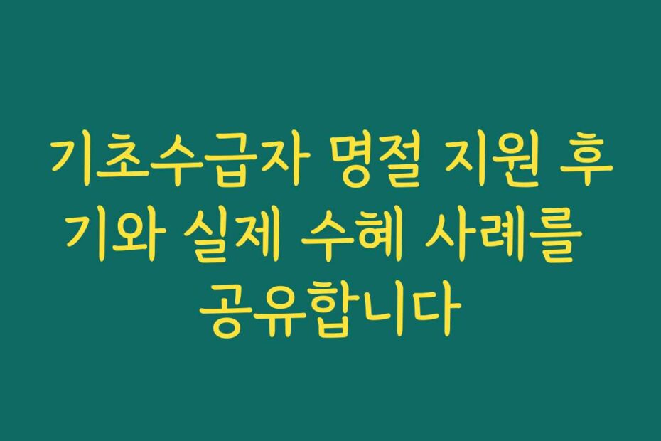 기초수급자 명절 지원 후기와 실제 수혜 사례를 공유합니다. 2026년 최신 정보에 기반하여 기초수급자에게 제공되는 명절 지원을 상세히 설명할게요. 이 글 하나로 명절 지원에 대한 모든 궁금증이 해소될 것입니다.