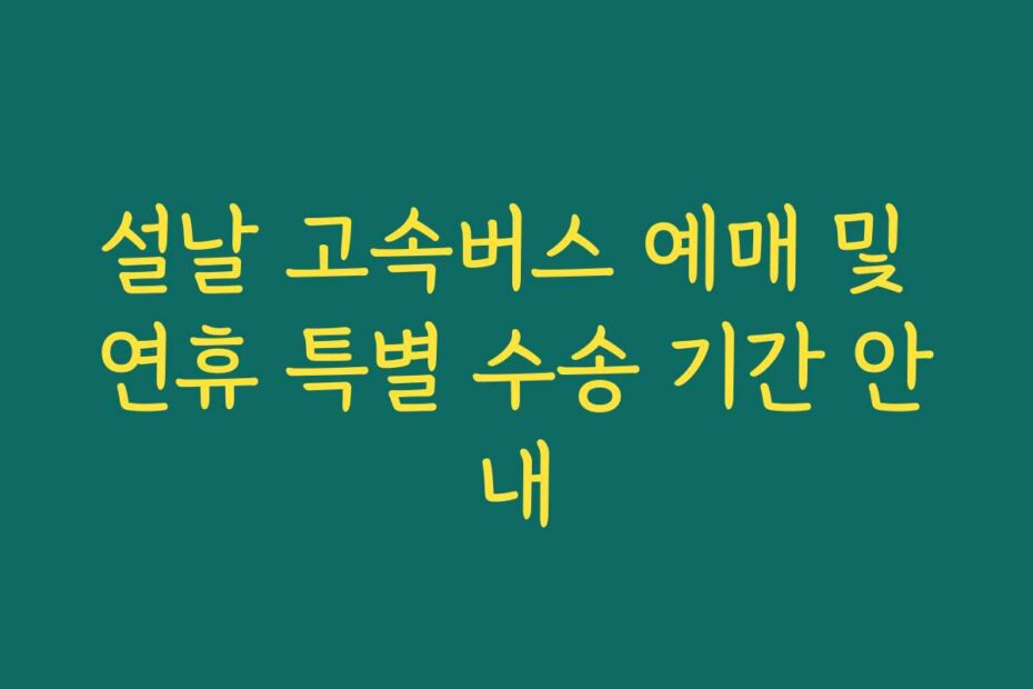 설날 고속버스 예매 및 연휴 특별 수송 기간 안내에 대한 궁금증을 풀어드립니다. 2026년 최신 정보와 함께, 어떻게 효율적으로 예매할 수 있는지 알아보세요. 연휴 동안 고속버스를 이용하는 분들에게 꼭 필요한 팁을 담았습니다.