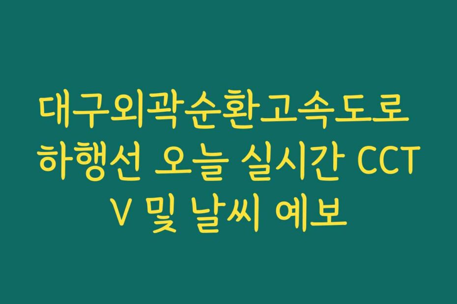 대구외곽순환고속도로 하행선 오늘 실시간 CCTV 및 날씨 예보 정보, 도대체 어디서부터 확인해야 할지 막막하시죠. 대구외곽순환고속도로 하행선 오늘 실시간 CCTV 및 날씨 예보를 확인하는 건 도로 이용자들에게 꼭 필요한 정보입니다.