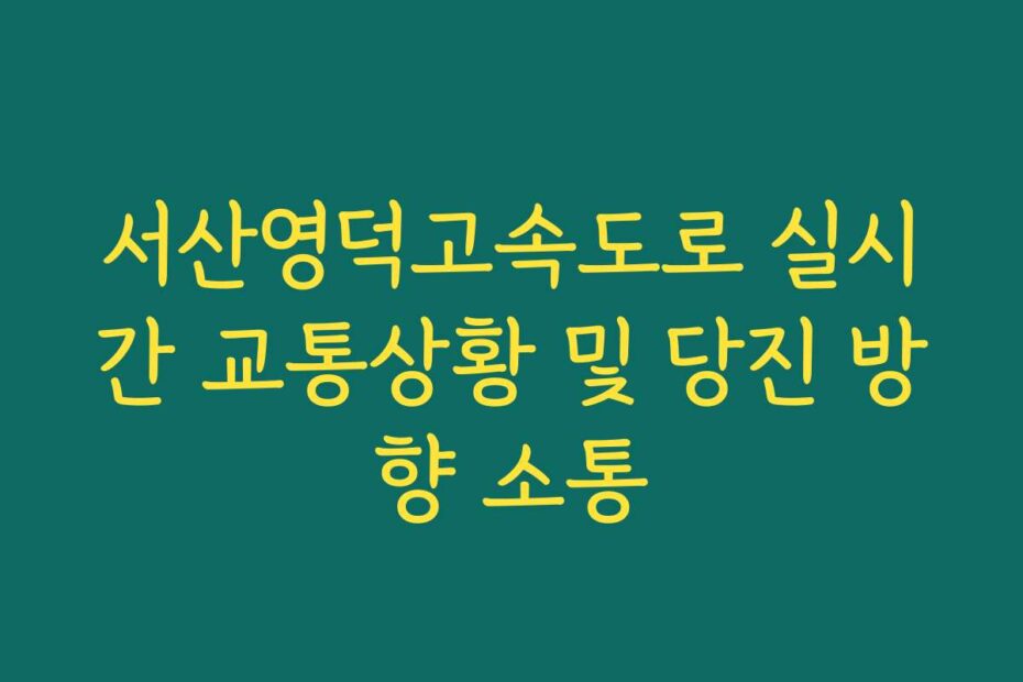 서산영덕고속도로 실시간 교통상황 및 당진 방향 소통에 대한 정보를 한눈에 확인할 수 있는 방법을 제공합니다. 2026년 최신 정보로 교통체증을 피하고 원활한 이동을 지원하는 다양한 팁을 안내할게요.