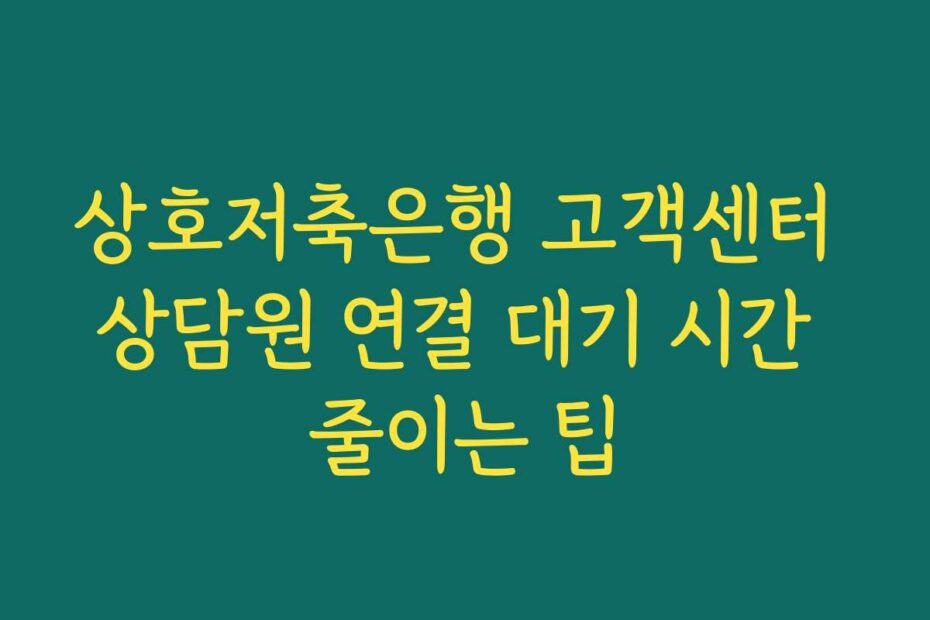 상호저축은행 고객센터 상담원 연결 대기 시간 줄이는 팁 정보, 도대체 어디서부터 확인해야 할지 막막하시죠. 상호저축은행 고객센터에 전화를 걸면 상담원 연결 대기 시간이 길어 답답함을 느끼는 경우가 많습니다.