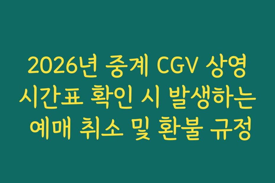 2026년 중계 CGV 상영시간표 확인 시 발생하는 예매 취소 및 환불 규정에 대한 정보, 이제 막막하지 않으시죠. 최신 정보에 따라 예매 취소와 환불 규정을 이해하는 것은 더욱 중요해지고 있습니다.