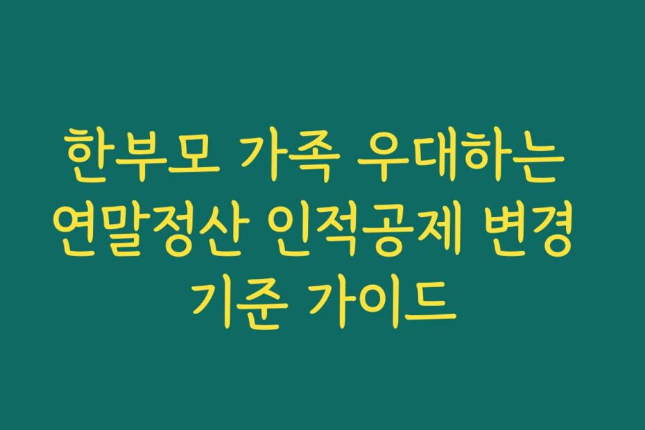 혹시 이런 고민 있으신가요. 2026년 최신 정보로 한부모 가족 우대하는 연말정산 인적공제 변경 기준 가이드에 대해 알아보겠습니다. 적절한 정보를 얻고, 필요한 절차를 손쉽게 진행할 수 있도록 도와드리겠습니다.