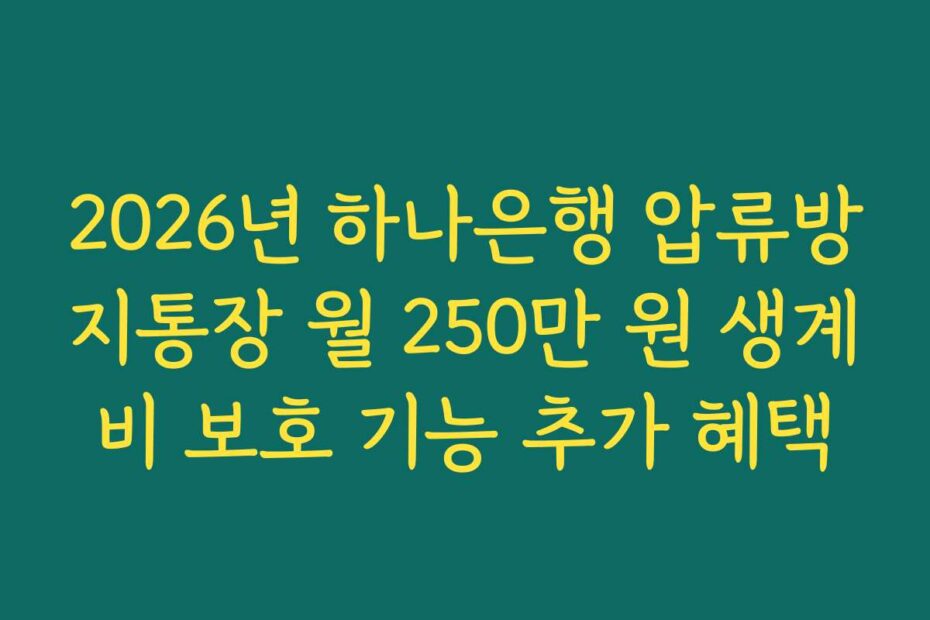 2026년 하나은행 압류방지통장 월 250만 원 생계비 보호 기능 추가 혜택이 주목받고 있습니다. 이번 변화는 많은 분들에게 큰 도움이 될 거예요. 생계비를 안정적으로 확보할 수 있는 방법, 지금 바로 알아보세요.