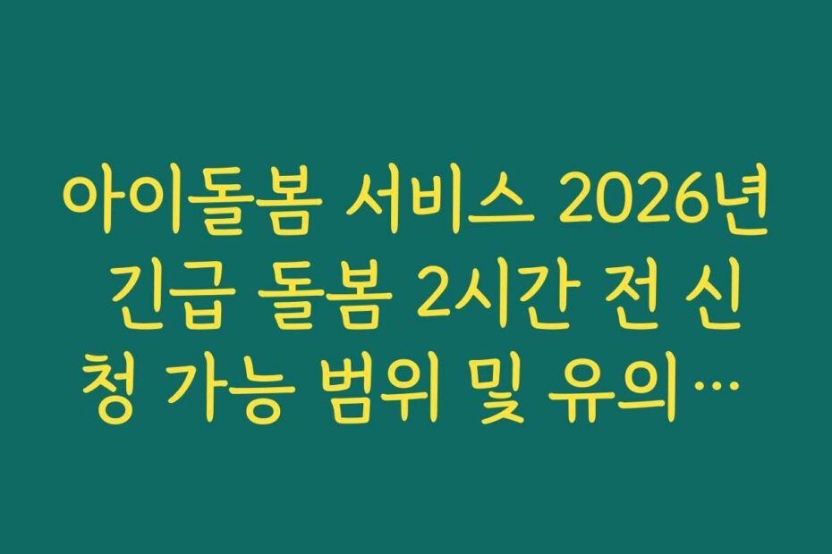 아이돌봄 서비스 2026년 긴급 돌봄 2시간 전 신청 가능 범위 및 유의사항에 대해 알아보세요. 최신 정보와 함께 신청 방법, 주의사항을 자세히 정리했습니다. 이 글 하나로 모든 궁금증을 해결할 수 있습니다.