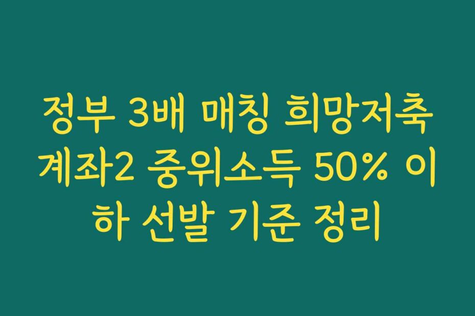 정부 3배 매칭 희망저축계좌2 중위소득 50% 이하 선발 기준 정리와 관련하여 가장 자연스러운 질문형 또는 인사이트형 제목 2026년, 정부 3배 매칭 희망저축계좌2 중위소득 50% 이하 선발 기준에 대한 관심이 높아지고 있죠.