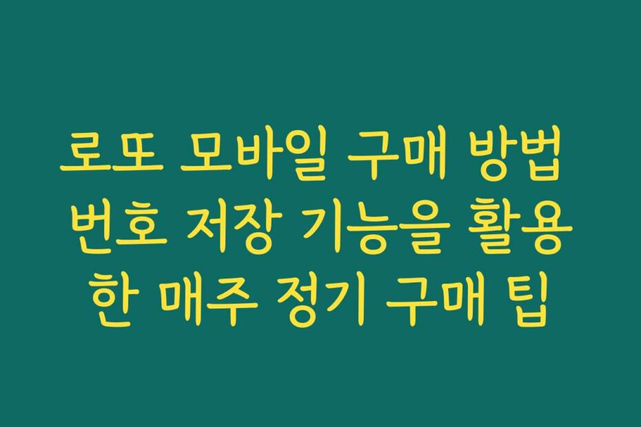 로또 모바일 구매 방법 번호 저장 기능을 활용한 매주 정기 구매 팁과 관련하여 가장 자연스러운 질문형 또는 인사이트형 제목 로또 모바일 구매 방법 번호 저장 기능을 활용한 매주 정기 구매 팁은 요즘 많은 분들이 관심을 가지는 주제죠.