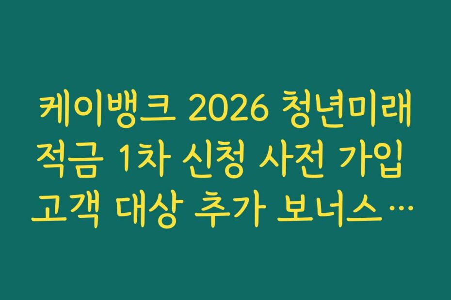 케이뱅크 2026 청년미래적금 1차 신청 사전 가입 고객 대상 추가 보너스 리워드 정리 정보, 도대체 어디서부터 확인해야 할지 막막하시죠. 2026년, 청년들의 미래를 위한 적금 상품이 화제가 되고 있습니다.