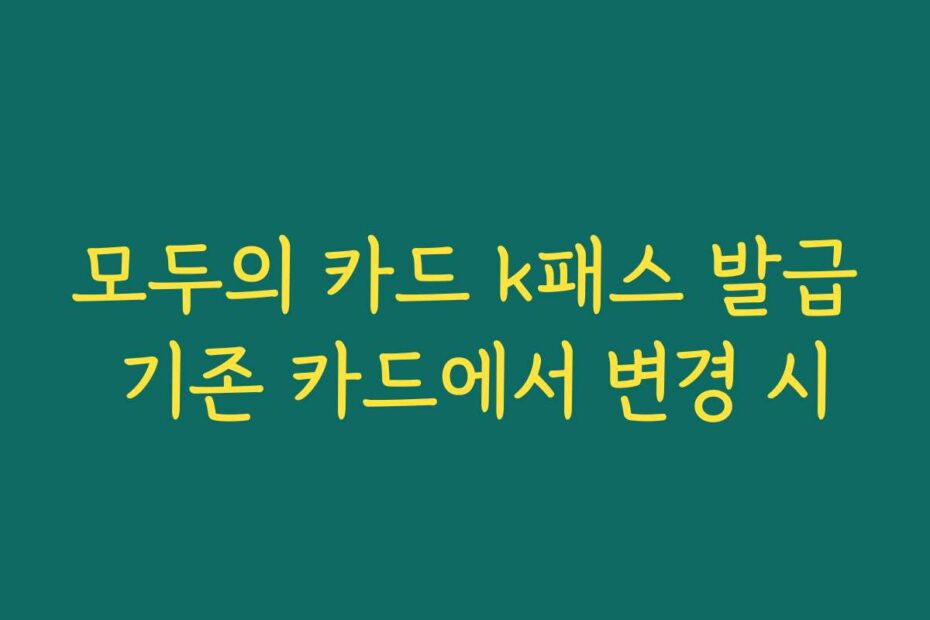 혹시 이런 고민 있으신가요. 2026년 최신 정보에 따르면, 모두의 카드 k패스 발급 기존 카드에서 변경 시 다양한 문제로 어려움을 겪는 분들이 많습니다. 이 글을 통해 해결책을 제시해 드리겠습니다.