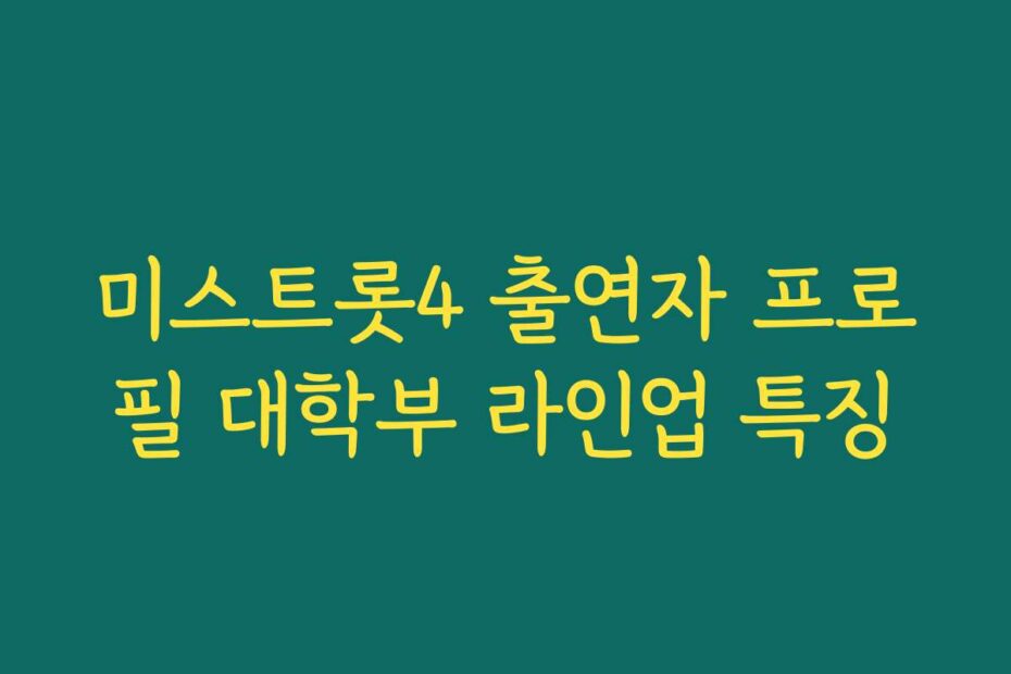 혹시 이런 고민 있으신가요. 2026년 최신 정보로 준비한 “미스트롯4 출연자 프로필 대학부 라인업 특징”에 대해 알아보겠습니다. 출연자 정보와 특징을 한눈에 이해하고 싶으신 분들을 위한 글입니다.