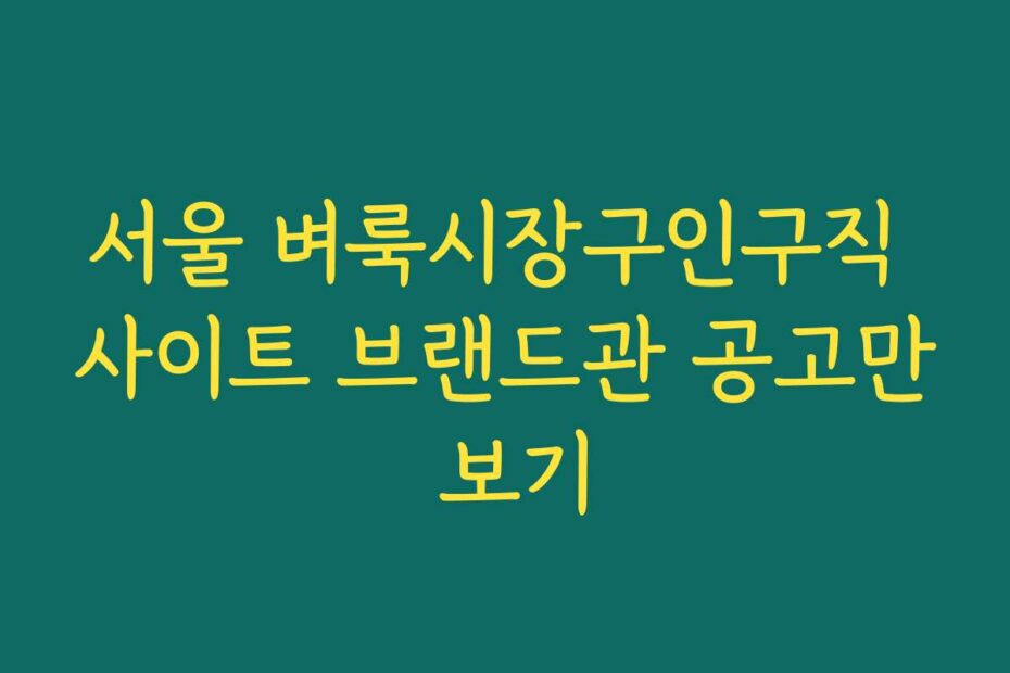 👉✅ 상세 정보 바로 확인 👈 혹시 이런 고민 있으신가요. 2025년 최신 정보로 서울 벼룩시장구인구직 사이트 브랜드관 공고만 보기를 통해 구직의 편리함을 느껴보세요.