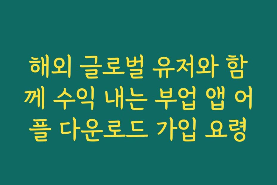 혹시 이런 고민 있으신가요. 2025년 최신 정보로 해외 글로벌 유저와 함께 수익 내는 부업 앱 어플 다운로드 가입 요령에 대한 궁금증이 가득하실 텐데요. 이 글에서는 부업 앱 어플을 통해 효과적으로 수익을 창출하는 방법을 알아보겠습니다.