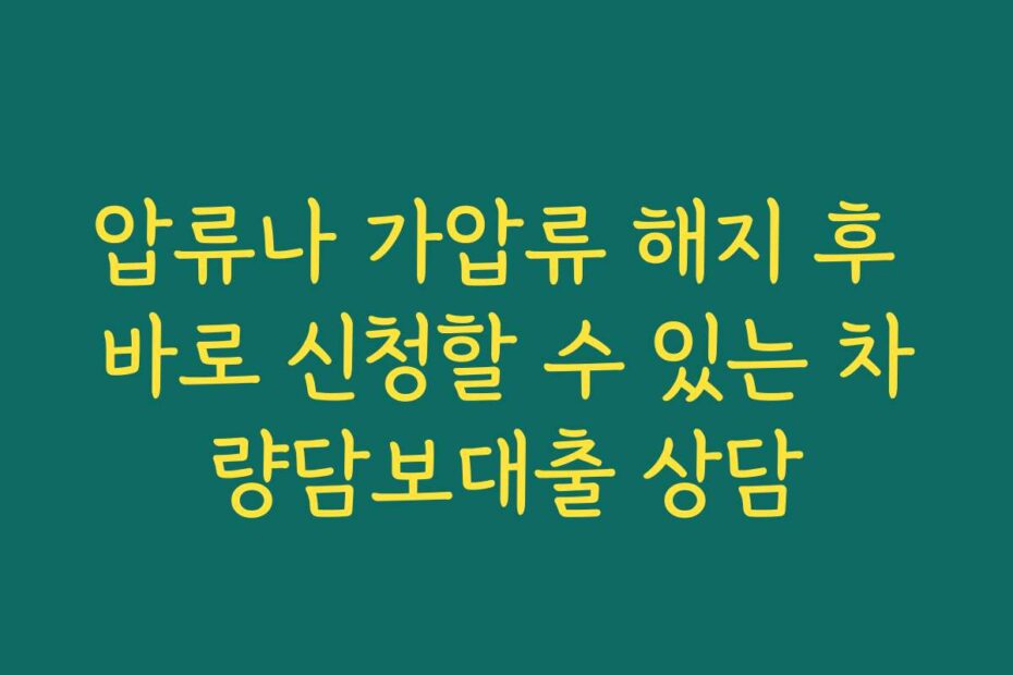 혹시 이런 고민 있으신가요. 압류나 가압류 해지 후 바로 신청할 수 있는 차량담보대출 상담에 대해 궁금한 점이 많으실 겁니다. 2025년 최신 정보와 함께 이 기사에서 모든 내용을 정리해 드리겠습니다.
