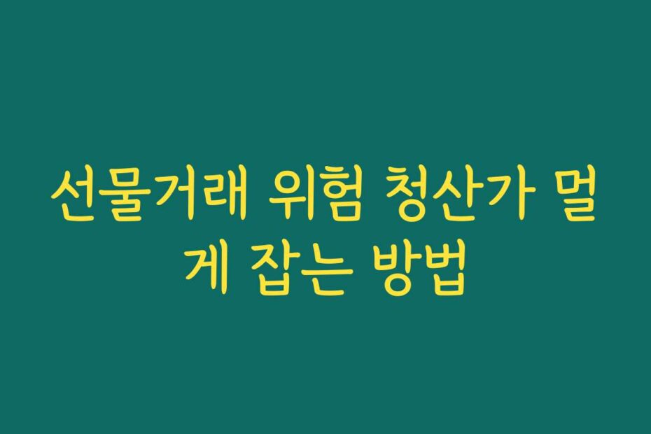 혹시 이런 고민 있으신가요. 선물거래 위험 청산가 멀게 잡는 방법에 대해 고민하고 계신다면, 2025년 최신 정보를 통해 해결책을 찾아보세요. 이 글을 통해 명확한 이해와 실행 가능한 정보를 제공하겠습니다.