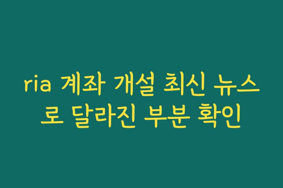 ria 계좌 개설 최신 뉴스로 달라진 부분 확인