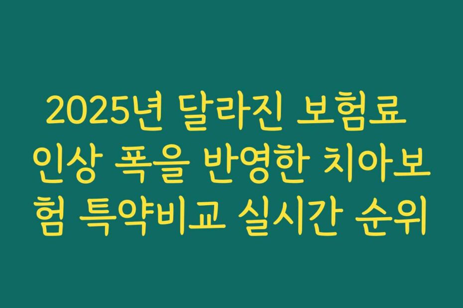 혹시 이런 고민 있으신가요. 2025년 달라진 보험료 인상 폭을 반영한 치아보험 특약비교 실시간 순위로 여러분의 선택을 돕겠습니다. 2025년 최신 정보로 치아보험을 현명하게 준비해보세요.