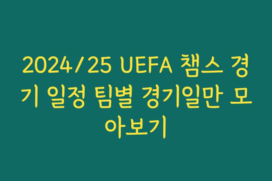 혹시 이런 고민 있으신가요. 2024/25 UEFA 챔스 경기 일정 팀별 경기일만 모아보기로 원하는 팀의 일정 정보를 쉽게 확인하고 싶지만, 정보가 너무 복잡해 고민이시라면 2025년 최신 정보를 통해 간편하게 해결할 수 있습니다.