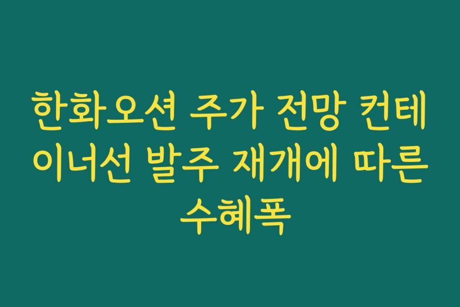 혹시 이런 고민 있으신가요. 2025년 최신 정보에 따르면 한화오션 주가 전망 컨테이너선 발주 재개에 따른 수혜폭이 주목받고 있습니다. 이 글을 통해 한화오션 주식에 대한 명확한 인사이트를 제공하겠습니다.