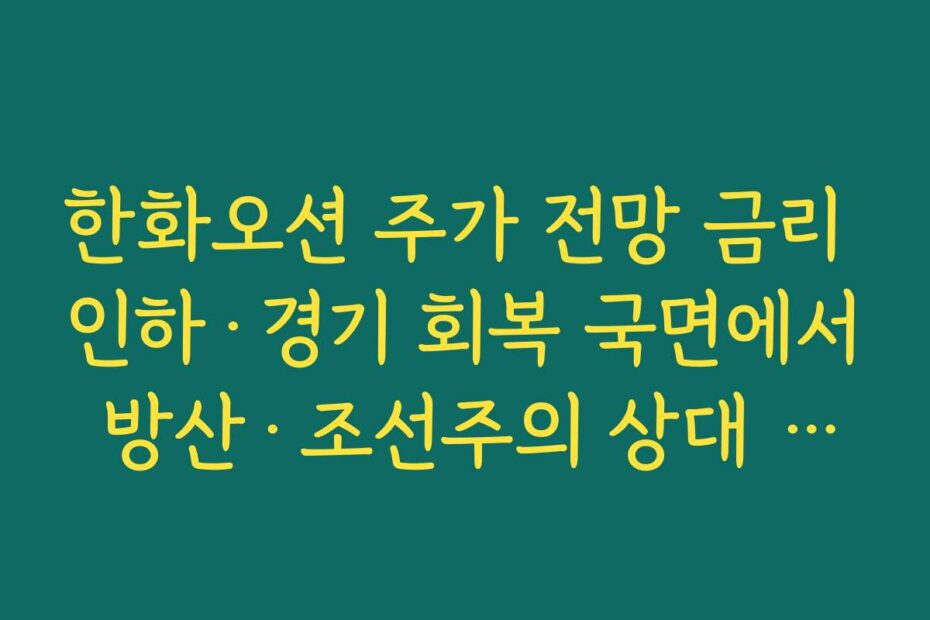 혹시 이런 고민 있으신가요. 2025년 최신 정보에 따르면, 한화오션 주가 전망 금리 인하·경기 회복 국면에서 방산·조선주의 상대 매력도에 대한 관심이 높아지고 있습니다. 이 글을 통해 여러분의 궁금증을 해결해 드리겠습니다.