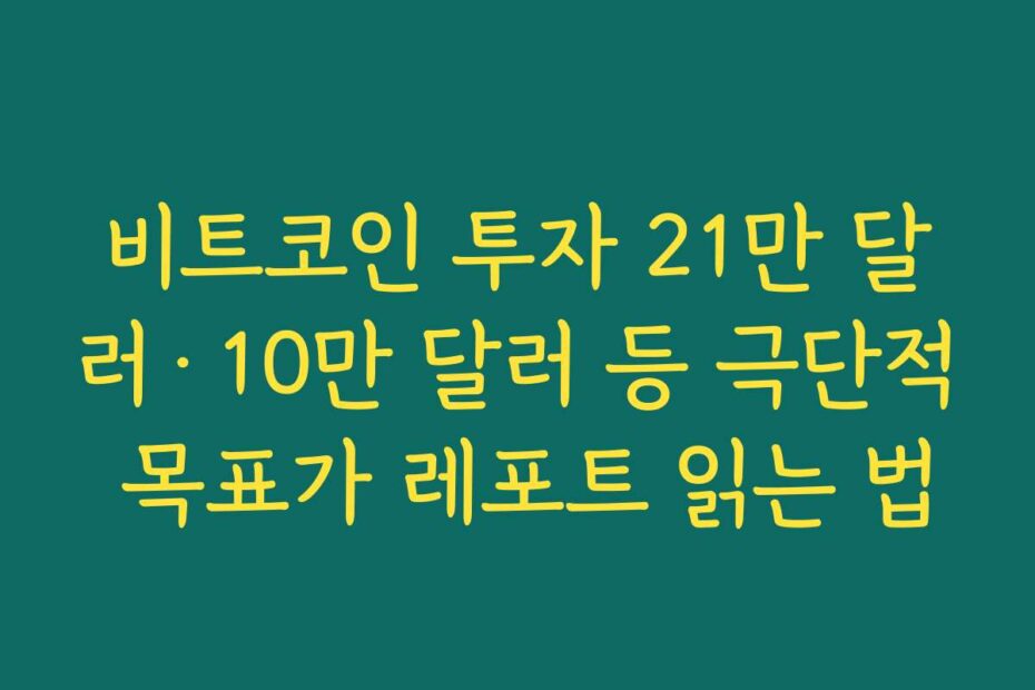 혹시 이런 고민 있으신가요. 비트코인 투자 21만 달러·10만 달러 등 극단적 목표가 레포트 읽는 법을 제대로 이해하지 못해 고민하고 계신다면, 2025년 최신 정보를 통해 해결할 수 있습니다.