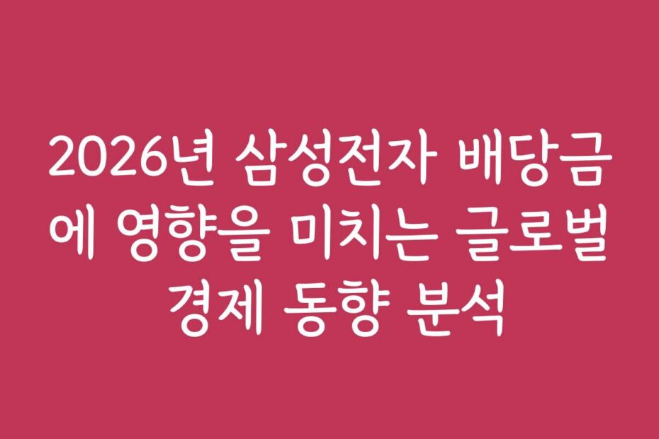 2026년 삼성전자 배당금에 영향을 미치는 글로벌 경제 동향 분석 2026년 삼성전자 배당금에 영향을 미치는 글로벌 경제 동향 분석을 통해 최신 정보를 얻고, 배당금에 대한 이해를 높여보세요.